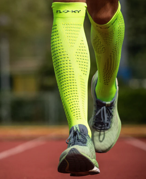 RUN UP LONG is the specific sock for running, designed by FLOKY to provide improved support of all biomechanical functions related to the foot and leg while allowing protection from injury and wear, speed of recovery, increased performance and environmental protection.
